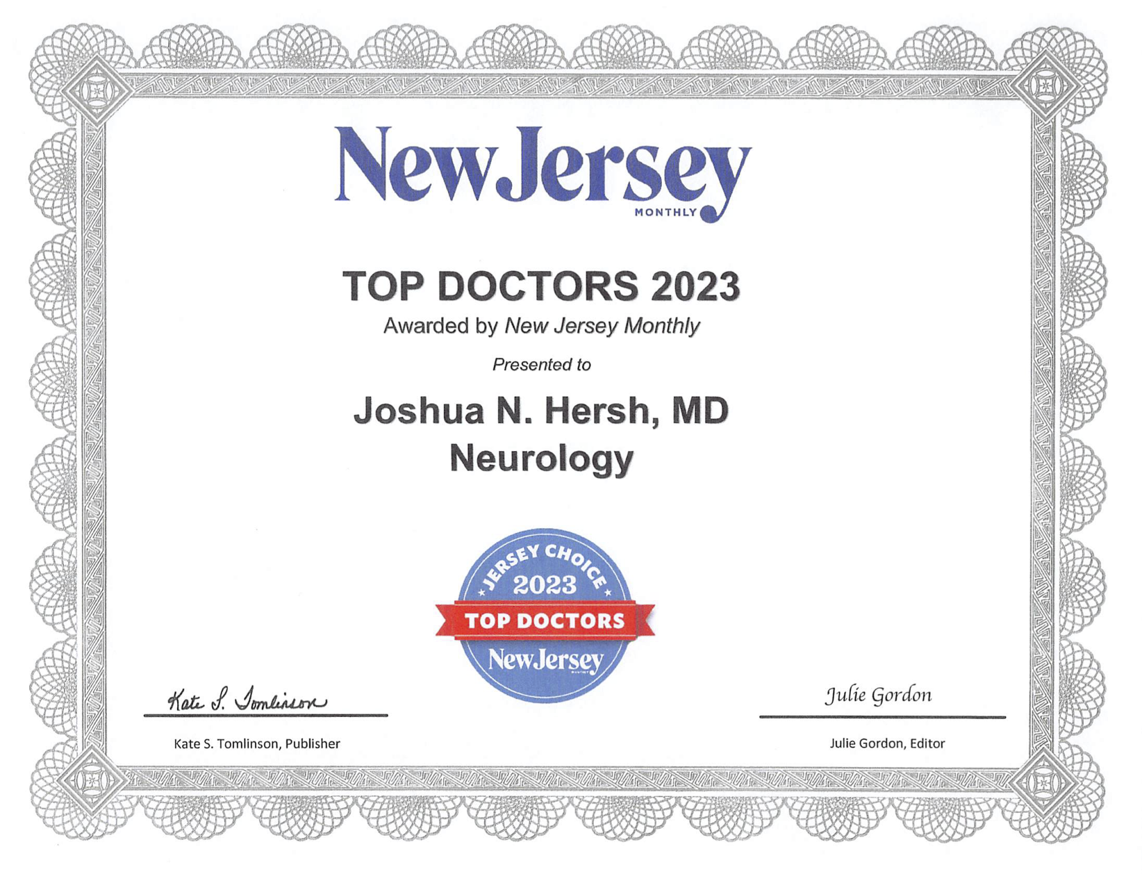 Dr. Hersh was awarded Top Doctors 2023 by New Jersey Monthly